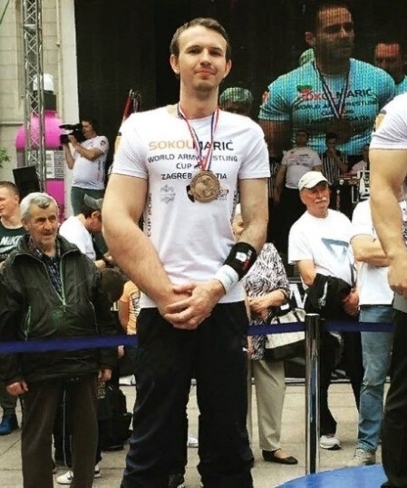 Egy fotó a helyi szkander bajnokról